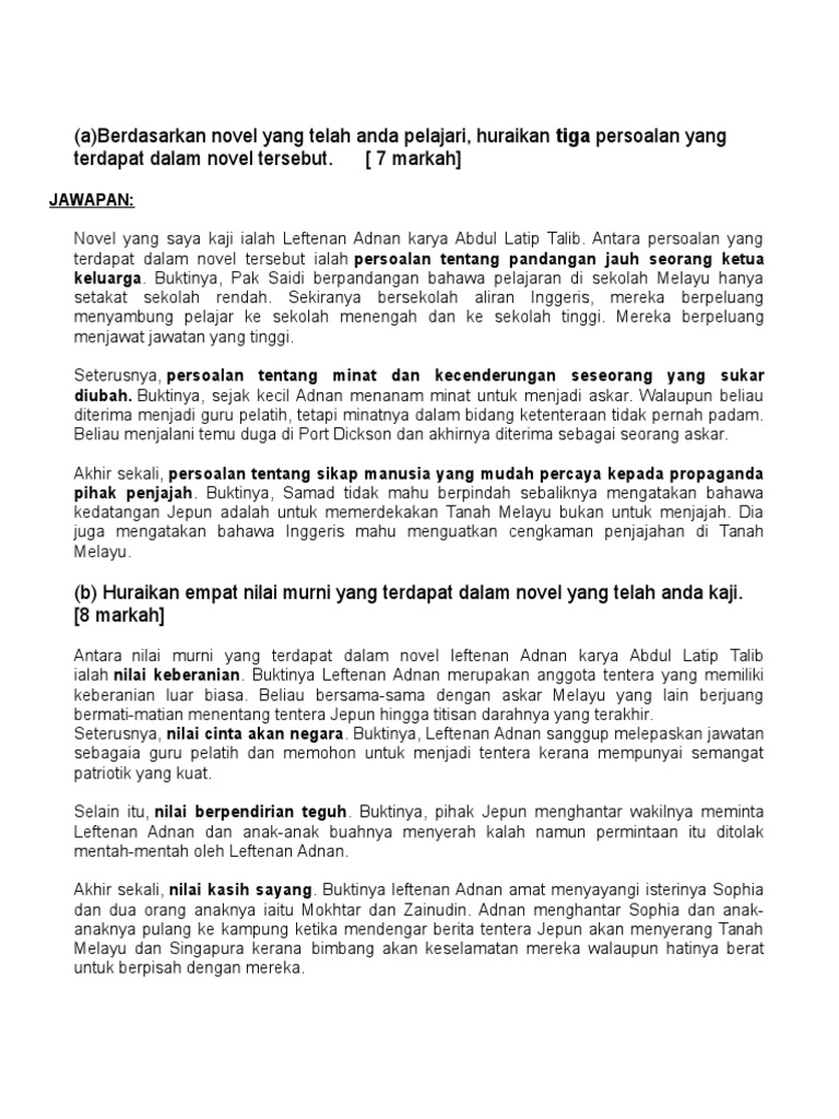 A Berdasarkan Novel Yang Telah Anda Pelajari Huraikan Tiga Persoalan Yang Terdapat Dalam Novel Tersebut 7 Markah Pdf